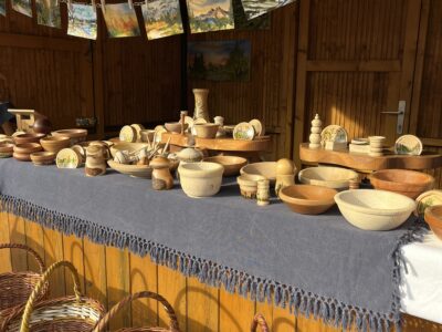 Osterschmuck, Holzhasen, Häkel- und Töpferwaren, Keramik- und Modeschmuck, Türkränze, Gestecke, Körbe, Drechselarbeiten, Malerei, Stofftaschen, Korbflechten, bedruckte Osterdeckerl, Geschenke, Süßwaren und vieles mehr.